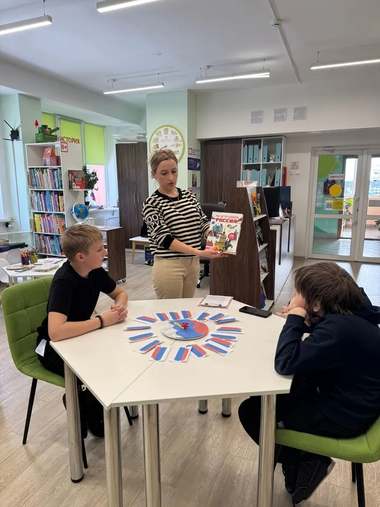 Одним из самых захватывающих событий Недели стала интерактивная игра «Вместе мы – Россия», которая прошла в формате интеллектуального соревнования. Для младших школьников вопросы транслировались на экране – ребята отвечали хором и наперегонки, проверяя свою смекалку и знания о родной стране. А для участников постарше организаторы приготовили настоящий сюрприз – макет барабана с рулеткой. Каждый по очереди крутил барабан, и стрелка указывала на номер вопроса. Карточки с заданиями лежали на столе, и игроки с азартом вытаскивали их, отвечая на вопросы о географии, истории, культуре и традициях народов России. Такой формат добавил игре духа соревнования и сделал её по-настоящему увлекательной.
