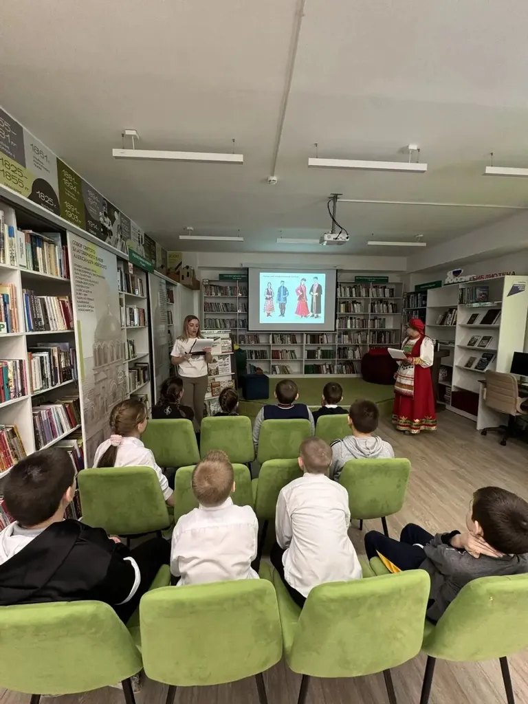 «В мире дружбы и культуры» – под таким названием в Детской библиотеке прошла ежегодная Неделя детской книги. В этом году она была посвящена Году народного единства и собрала множество юных читателей, готовых к новым открытиям и приключениям. Неделя началась с путешествия «Тайны народов России». Перед юными пользователями предстала настоящая карта народных костюмов: нарядный русский сарафан, расшитый татарский камзол, гордая кавказская черкеска и тёплая меховая малица, спасающая северян от суровых морозов. А волшебная шкатулка с зеркалом внутри напомнила всем, что главное богатство России – это сами дети. Завершилось открытие народными играми: русскими «Горелками», татарской игрой «Займи место» и казахскими скачками «Байге». Дружный хор голосов, произнесший «Вместе мы – сила!», стал настоящим символом этого дня.