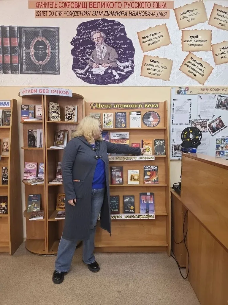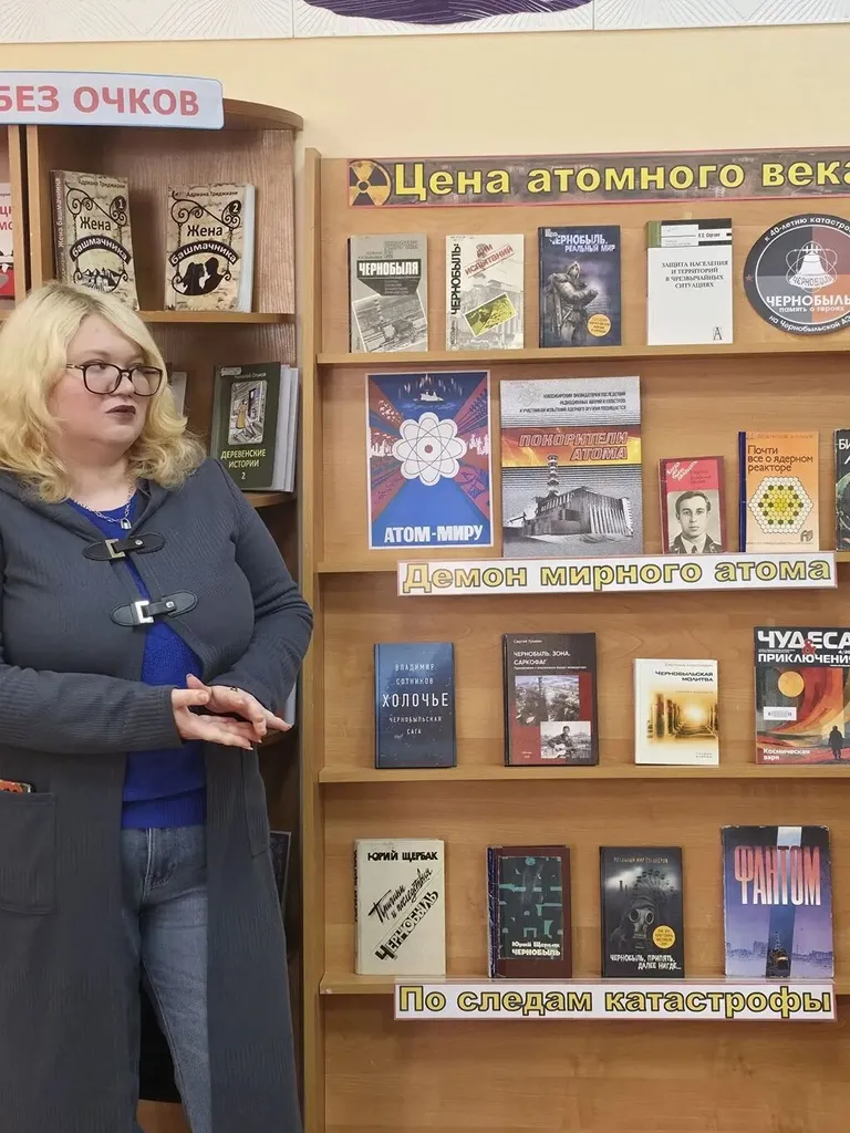 В библиотеке действовала выставка-реквием «Цена атомного века». На стеллажах - книги и документальные материалы, которые помогают осмыслить причины и масштаб трагедии на Чернобыльской АЭС. Центральное место заняло издание «Покорители атома», рассказывающее о подвиге новосибирских ликвидаторов - тех, кто участвовал в устранении последствий аварии и в испытаниях ядерного оружия. Сердце каждого, кто знаком с историей катастрофы, не могло оставить равнодушным и другое важное издание — биография Владимира Правика. Этот молодой лейтенант, командир пожарного караула, одним из первых прибыл к разрушенному реактору, чтобы ценой собственной жизни остановить распространение огня. Дополнили подборку другие книги и журналы, где тема Чернобыля раскрывается и через суровые документальные очерки, и через пронзительные художественные произведения. Ведущая провела обзор данной экспозиции.